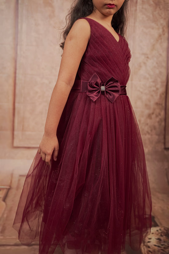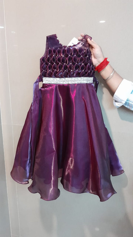Pariari Girls Elegant Purple wine Applique Party Gown
