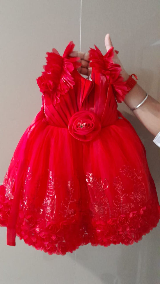 Pariari Girls Floral Applique Polyester Party Dress with long sleeves