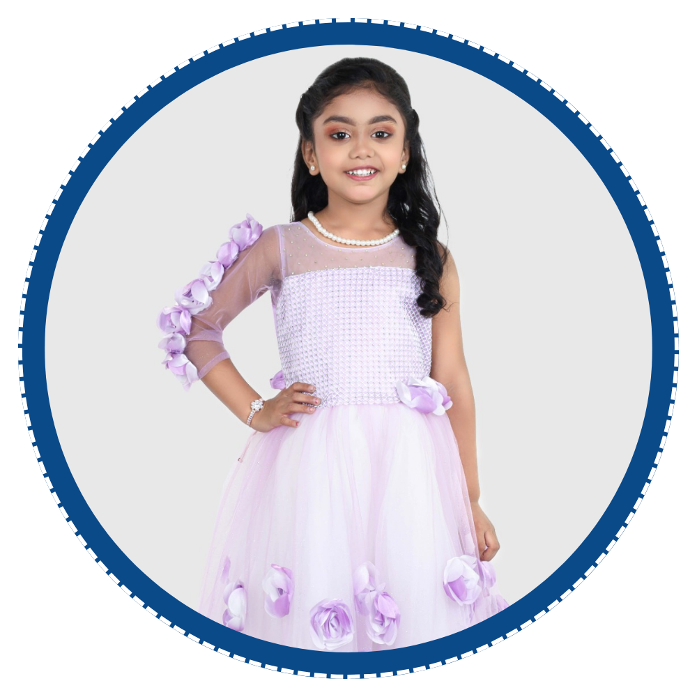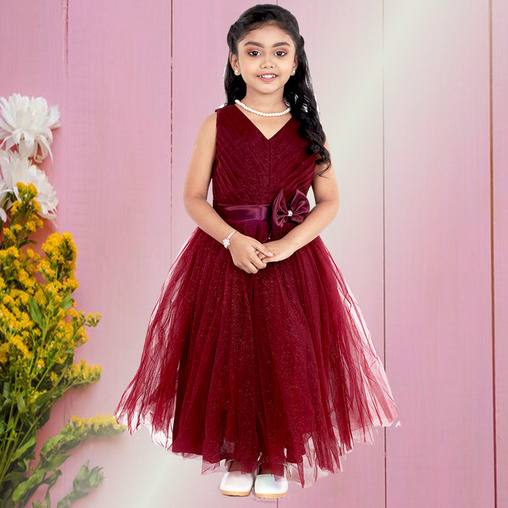 Pariari Girls Elegant Purple wine Applique Party Gown